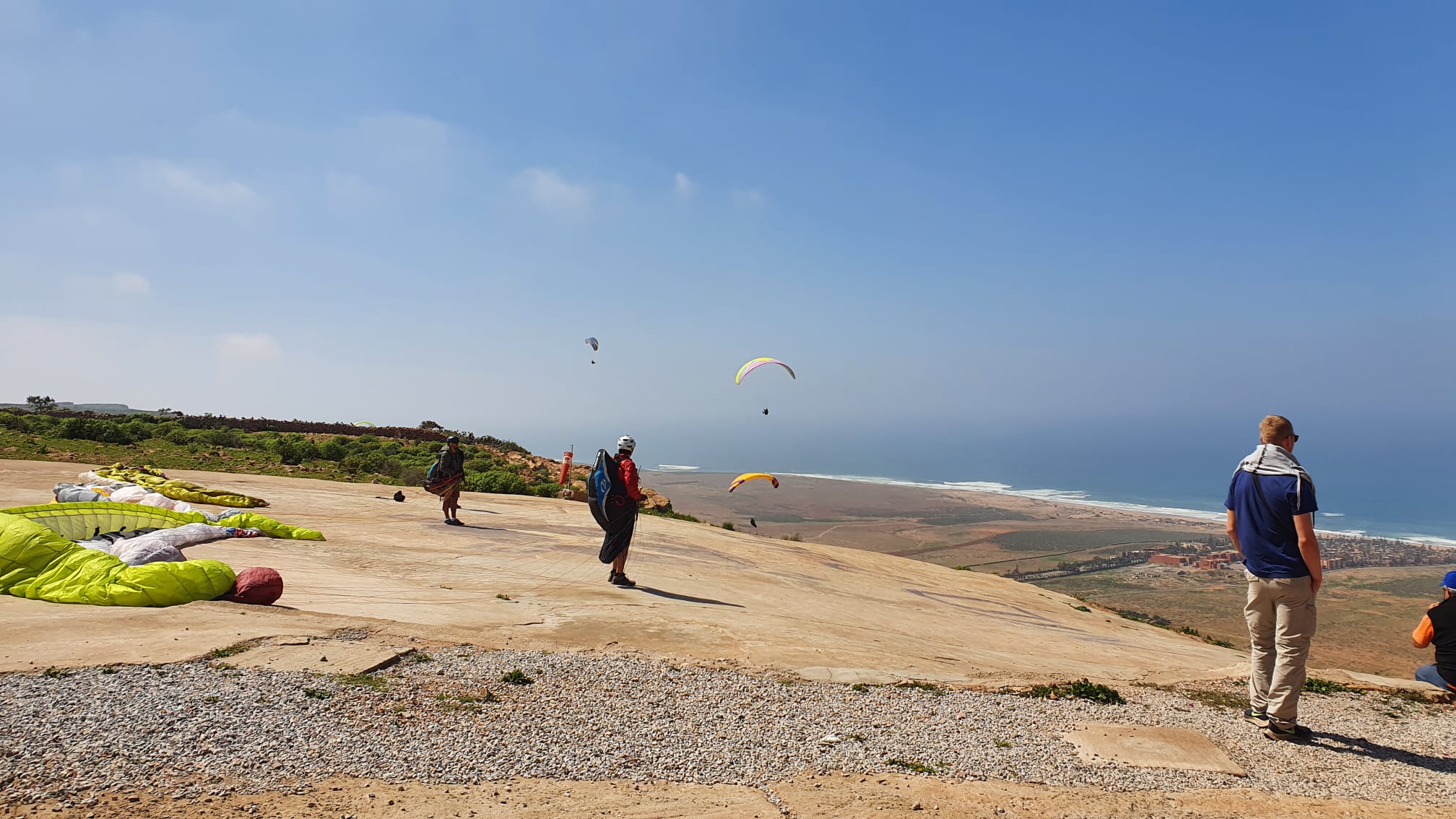 Wir fliegen von Basel nach Agadir. Von da geht’s in 1h30 Richtung Süden zu unserem Ziel für die ersten paar Tage, in die Gegend von Mirleft. Wir wohnen sozusagen auf dem Startplatz, feinste lokale Küche, ein Pool auf dem Startplatz und Zimmer mit einem typischen marokkanischen Flair, ein Ort an dem man eigentlich gar nicht mehr weg will. In Fahrdistanz erreichen wir mit den 4×4 Jeeps diverse Fluggebiete. Ganz egal ob der perfekt präparierte Startplatz von Nid d’aigle zum stundenlangen thermodynamischen Fliegen und toplanden, das Beachsoaren in Aglou oder der Flug zum weltbekannten Felsentor von Legzira, die Gegend wird uns begeistern und wir werden so einiges erleben. Beim Sonnenuntergang auf dem Startplatz sitzen zu können mit einem kühlen Bier in der Hand, 10 Schritte ins hauseigene Restaurant und ebenso viele in das Zimmer, ist schon ein unglaubliches Erlebnis.