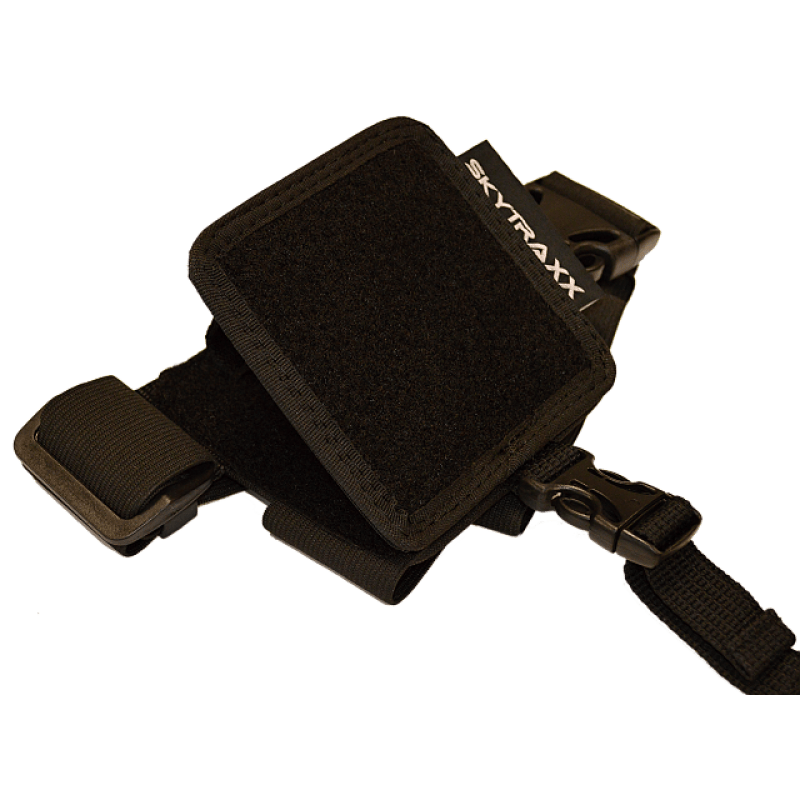 Die neue komfortable Beinhalterung von SKYTRAXX erlaubt ein sicheres und angenehmes Befestigen des Skytraxx auf dem Oberschenkel. Die Beingurte werden doppelt geführt und verteilen einerseits den Druck und verhindern gleichzeitig ein Verrutschen. Zusätzlich gibt es noch eine Sicherungsschlaufe mit Verschluss, mit welcher die Halterung und das Fluginstrument am Beingurt des Gurtzeugs befestigt werden können. Letztes verhindert auch ein Abrutschen beim Startvorgang.